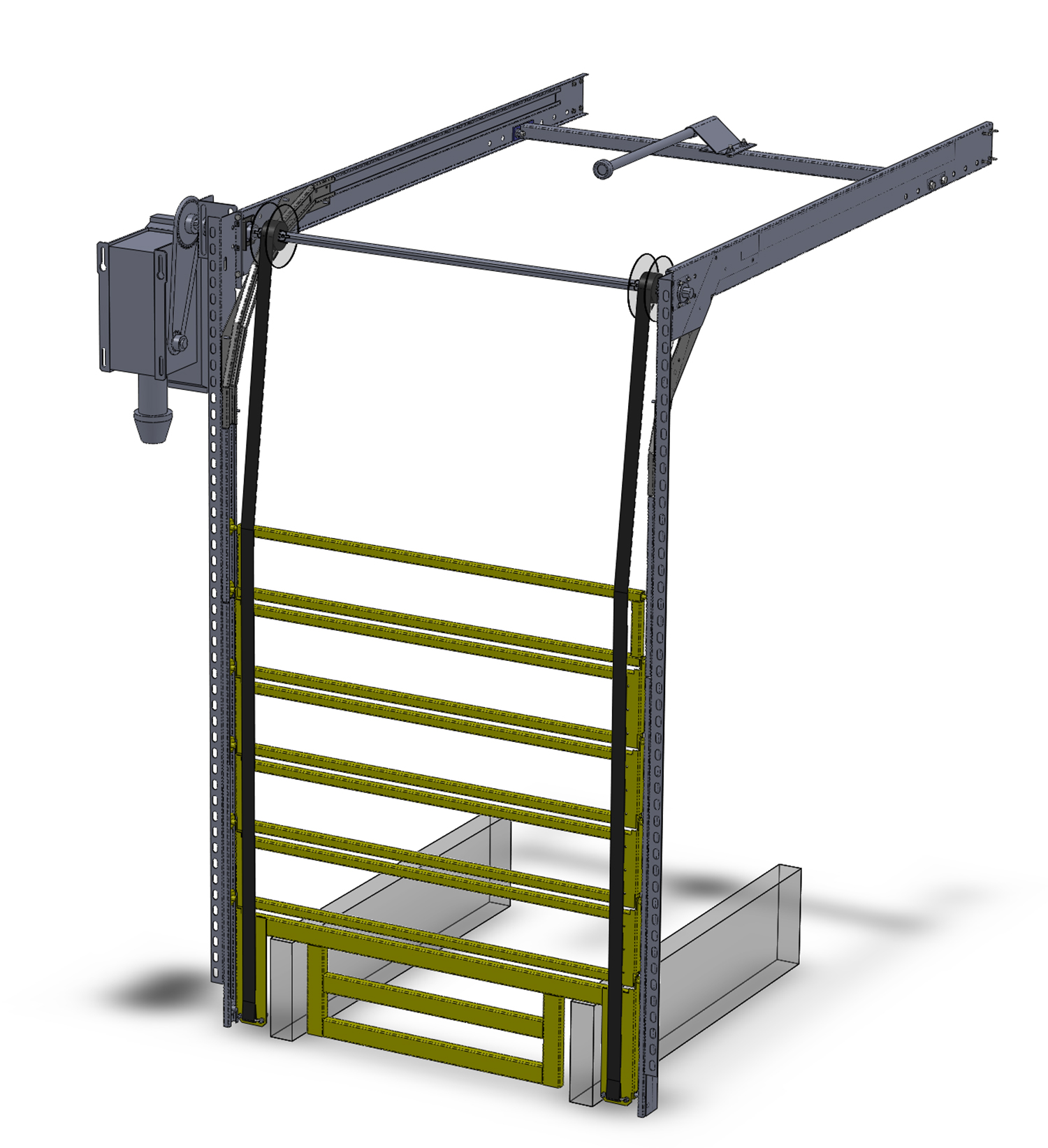 The RobotGate® is a safety gate that protects industrial robots from falling into shafts of vertical reciprocating conveyors (VRCs) or elevators in automated storage and retreval systems (ASRS) of material handling, warehousing and distribution facilities.